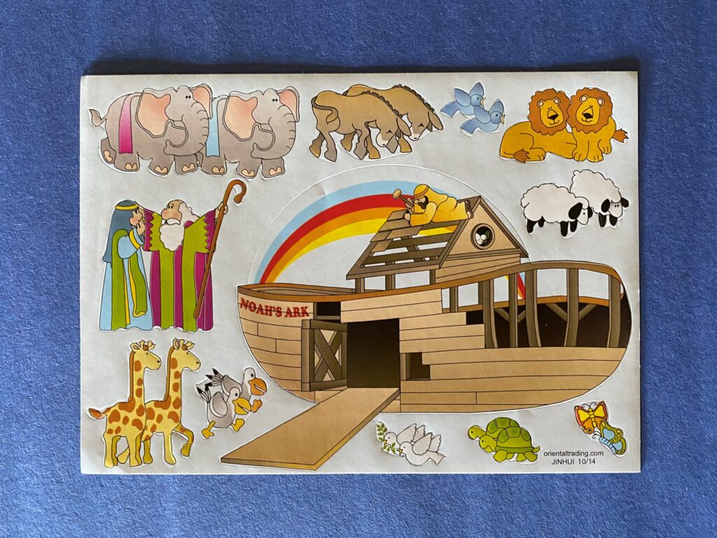 We decorated a paper with Noah’s Ark Stickers remembering Noah’s faith as an example from the Old Testament given in 1 Peter 3 .